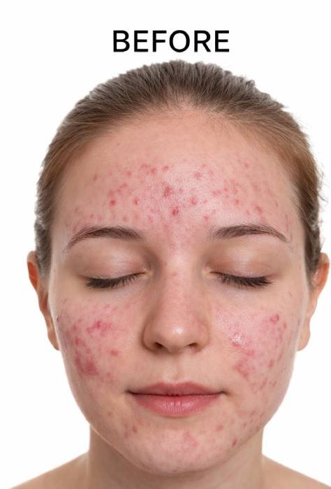 Acne develops when excess oil, bacteria, and dead skin cells clog pores, resulting in pimples, blackheads, and inflammation.