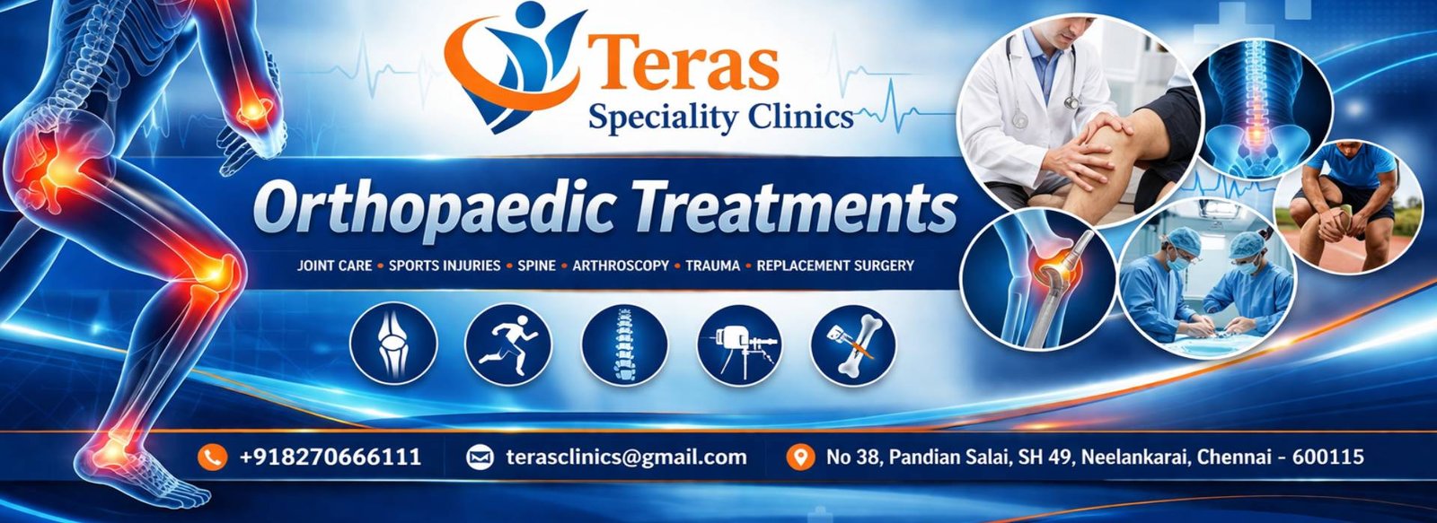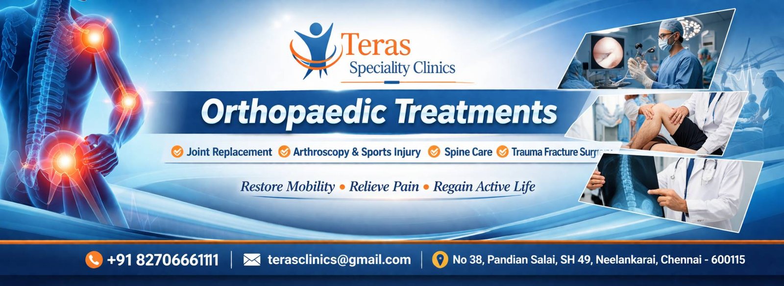 Tera’s Speciality Clinics is one of Chennai’s most trusted centers for Orthopaedics and Dermatology, offering comprehensive care backed by medical expertise and state-of-the-art technology.