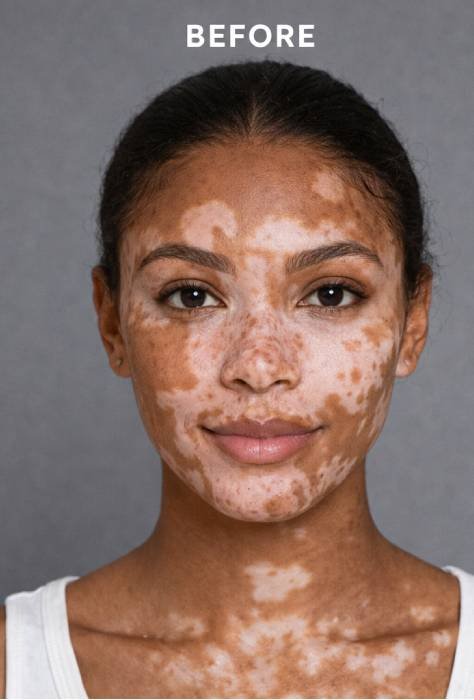 Before beginning treatment at Teras Speciality Clinics, many individuals struggle with visible white patches that gradually expand across the skin, leading to uneven skin tone and a noticeable impact on confidence and daily interactions. These patches often persist despite home remedies or previous treatments, leaving patients feeling uncertain and emotionally distressed. After undergoing our advanced and personalized vitiligo care, patients commonly experience a remarkable transformation—natural skin colour begins to return, patch size reduces, and the progression of vitiligo becomes significantly controlled. Over time, the skin tone appears more even and healthy, offering not just cosmetic improvement but also renewed self-esteem and comfort in social environments. With expert-guided follow-ups and long-term care at Teras, patients regain clarity, stability, and confidence in their skin.