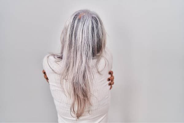 Hair in the affected patches, including eyebrows, eyelashes, beard, or scalp, may turn white or gray earlier than usual.